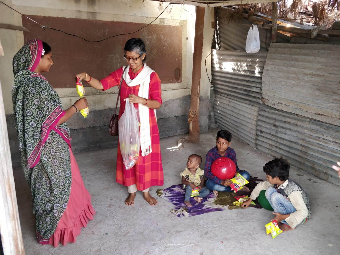 A creche was started at a site in Jamnagar. A lady is deputed to take care of the children, when mothers are working.