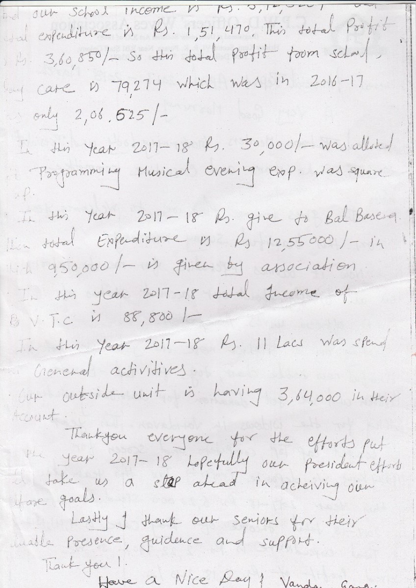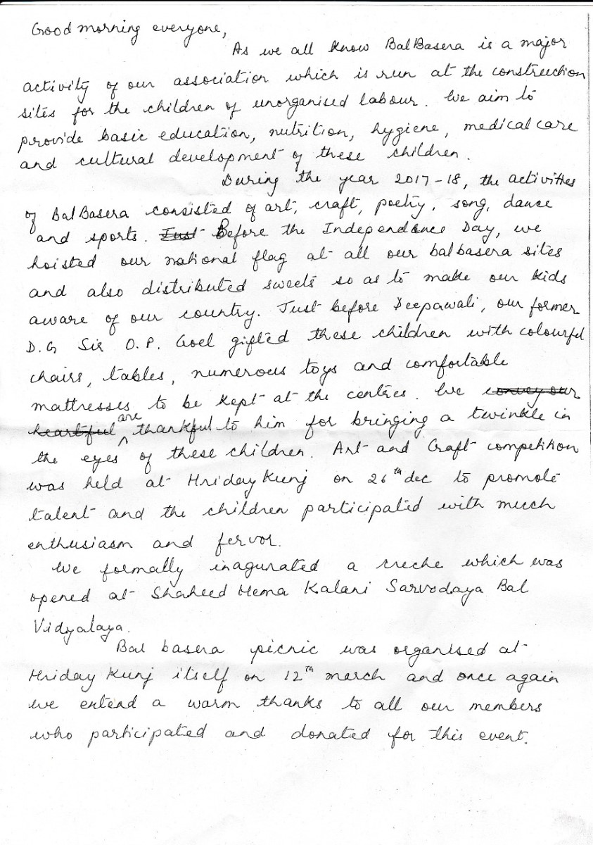 AGM Report 2018 By Mrs Mamta (Bal Basera)