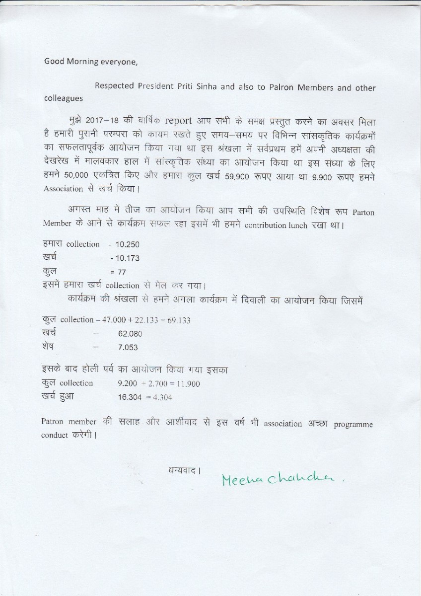 AGM Report 2018 By Mrs Vandana Garg (Treasurer)