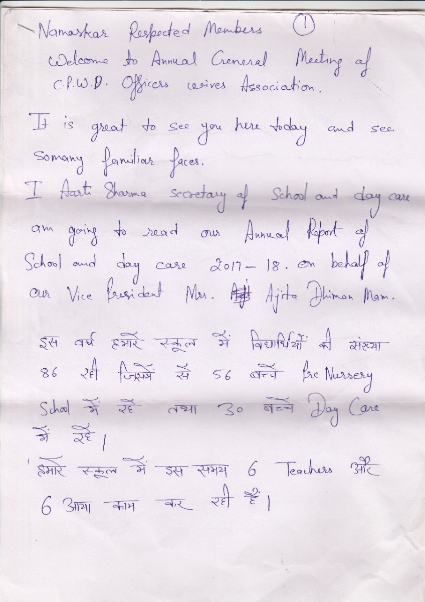AGM Report 2018 By Mrs Aarti Sharma (School & Day Care)