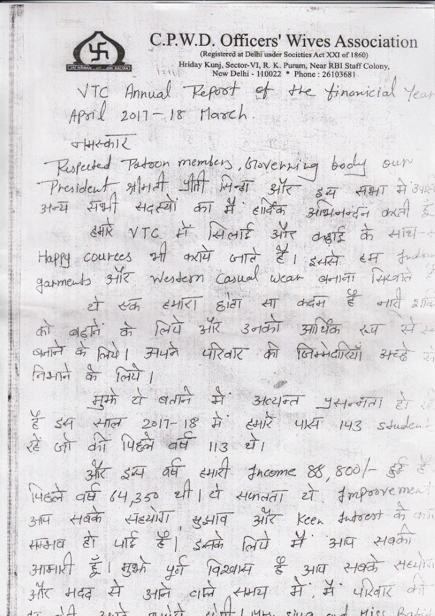 AGM Report 2018 By Mrs Vandana Garg (VTC)