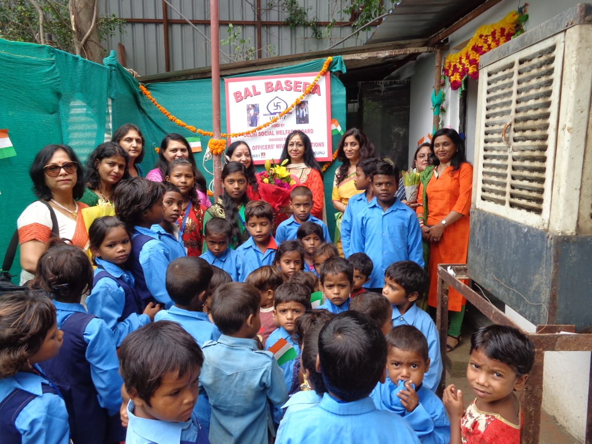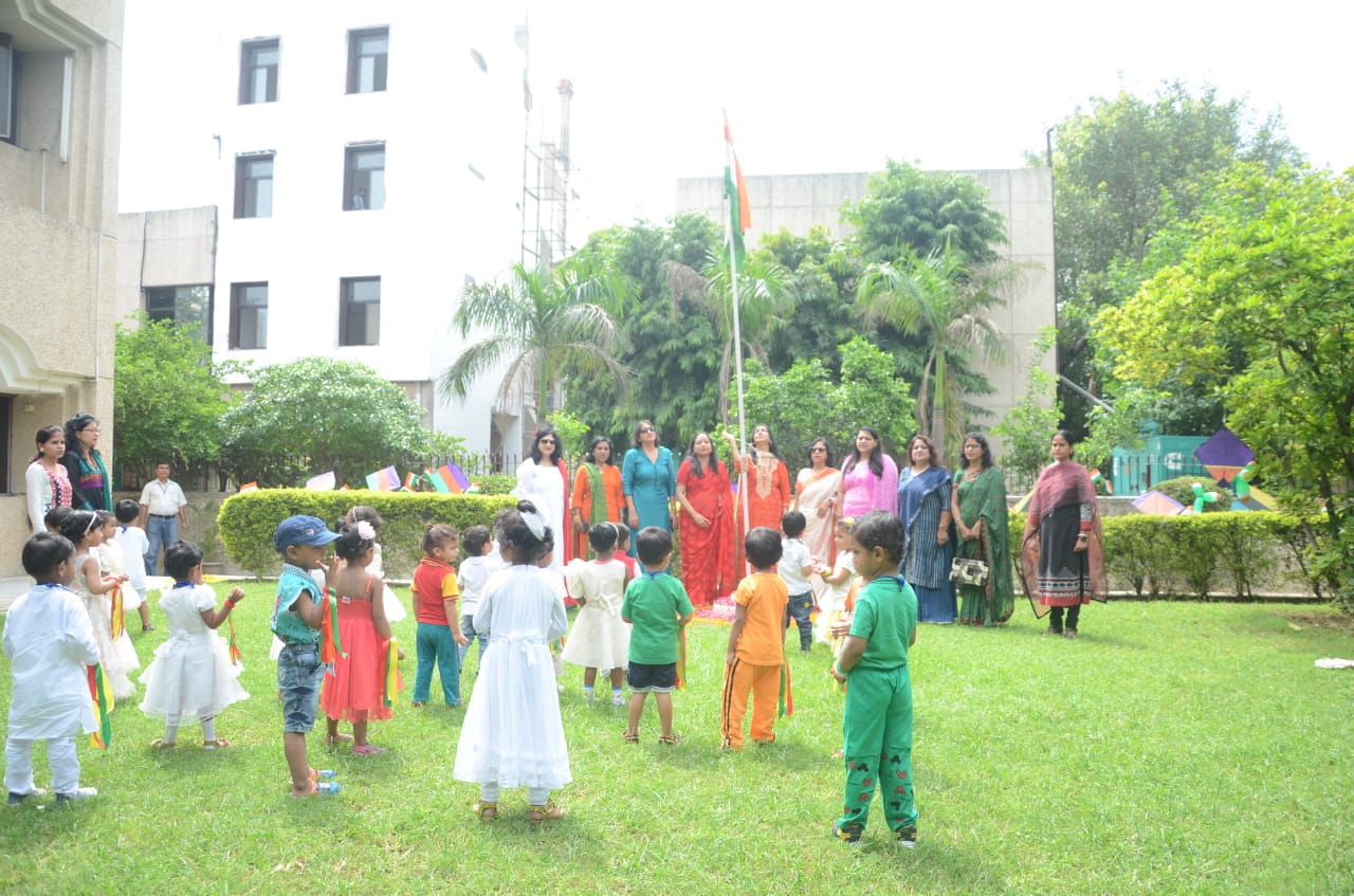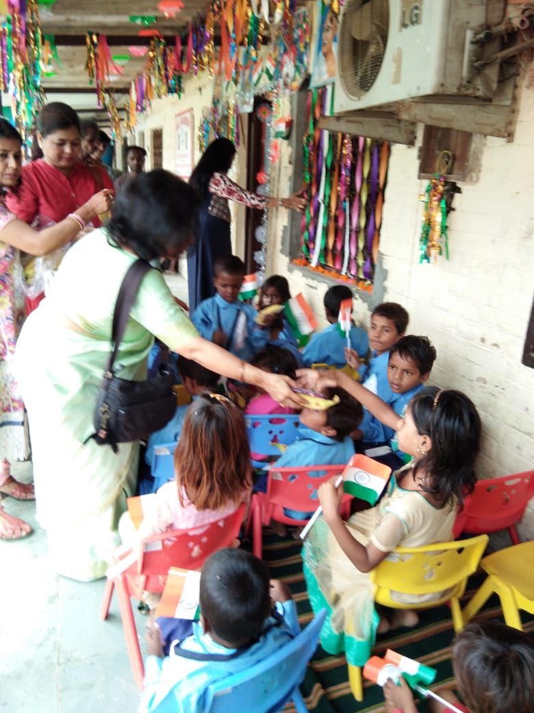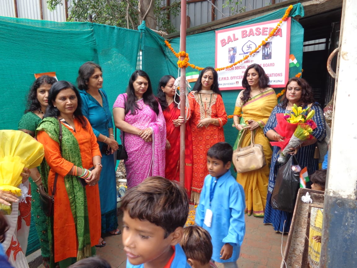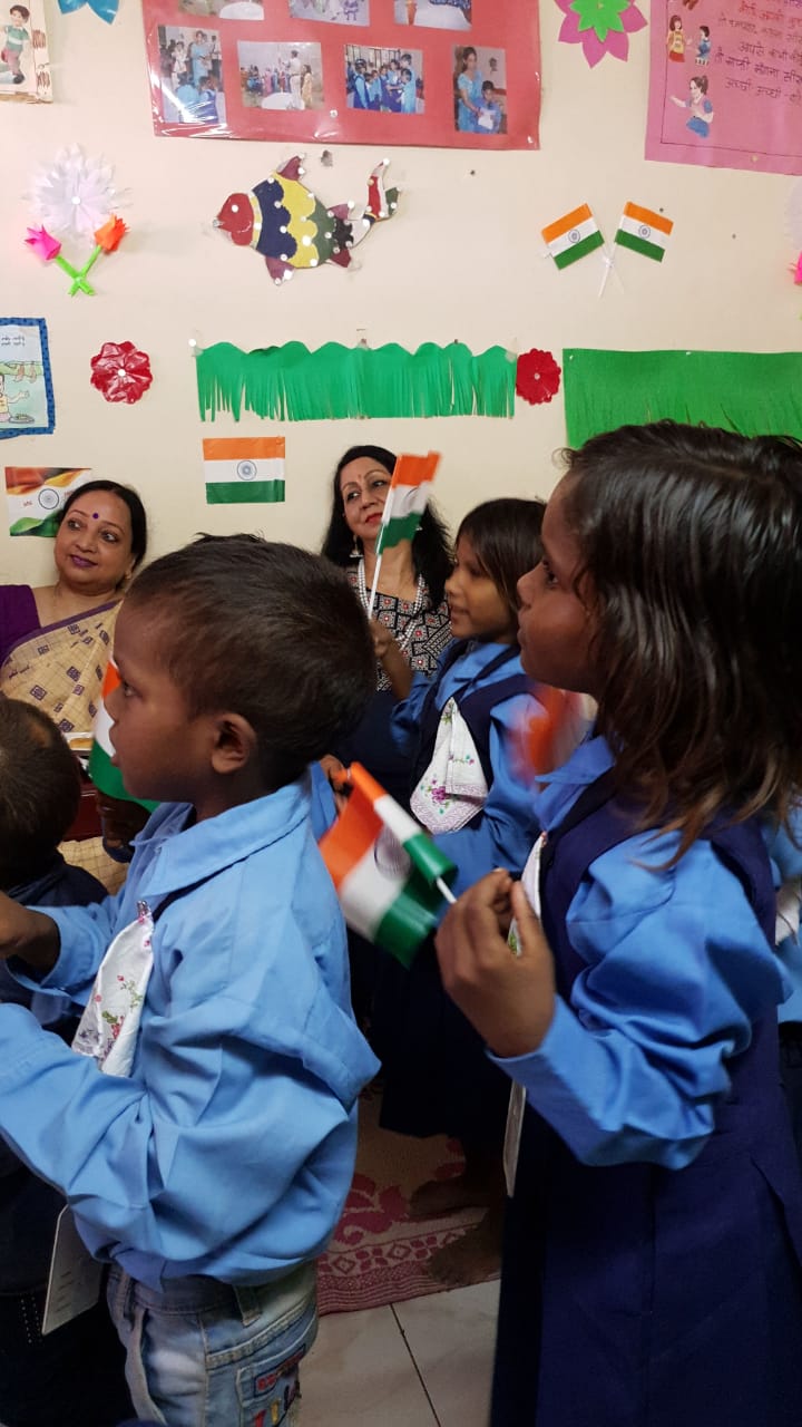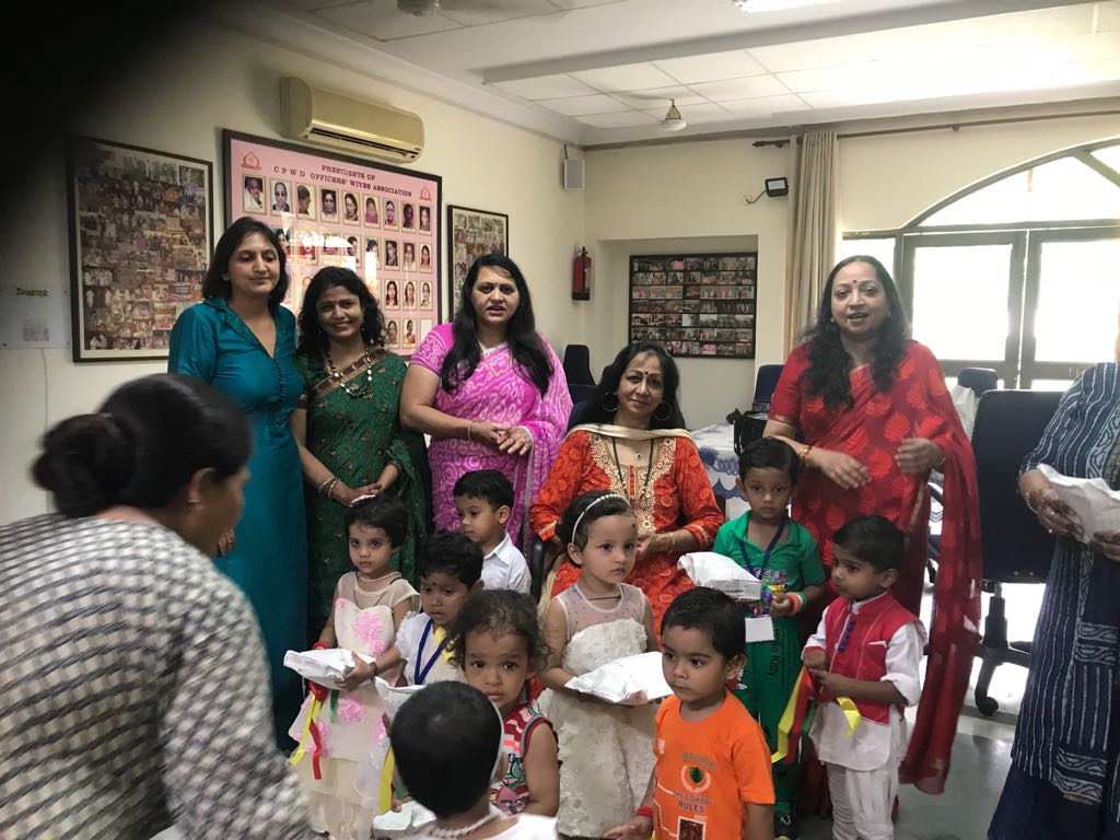 C.P.W.D. Officers' Wives Association celebrated Independence Day in its different creches and School & Day care centre at Hriday Kunj. President Smt. Deepa Singh hoisted the National Flag along with Vice Presidents and executive members. On this occasion children participated in different cultural activities like songs, dances etc. It was a great achievement for teachers who cultivated overall development of children & made them aware of their National Festival. Sweets, fruits and gifts were distributed among the children.